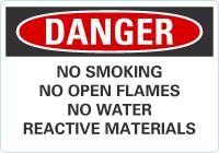 OSHA Danger Sign: No Smoking No Open Flames No Water Reactive Materials