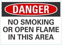 OSHA Danger Sign: No Smoking Or Open Flame In This Area