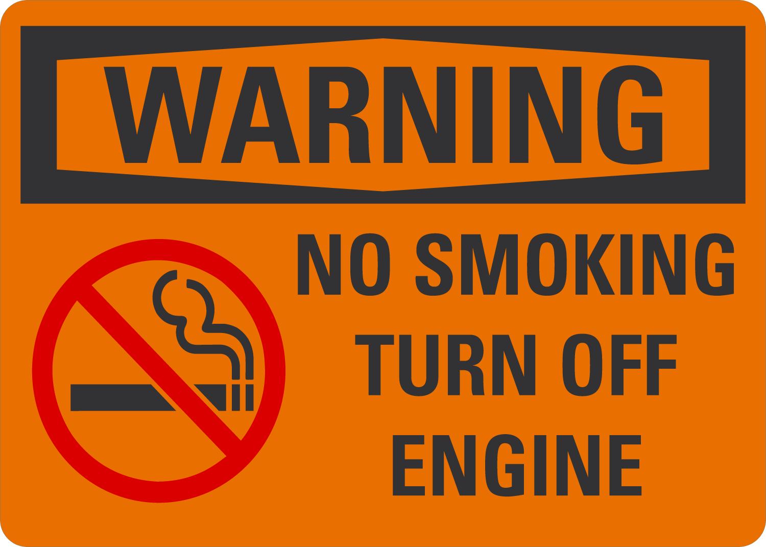 OSHA Warning Sign: No Smoking Turn Off Engine