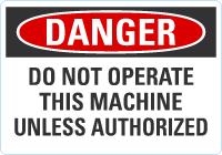 Danger OSHA Sign: Do Not Operate This Machine Unless Authorized