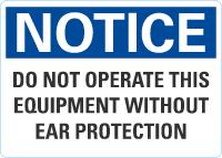 OSHA Notice Sign: Do Not Operate This Equipment Without Ear Protection