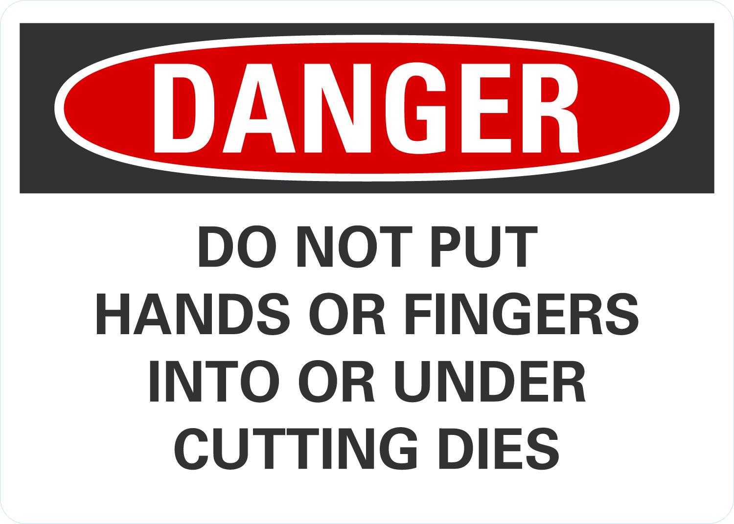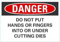 Danger OSHA Sign: Do Not Put Hands Or Fingers Into Or Under Cutting Dies