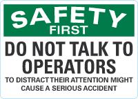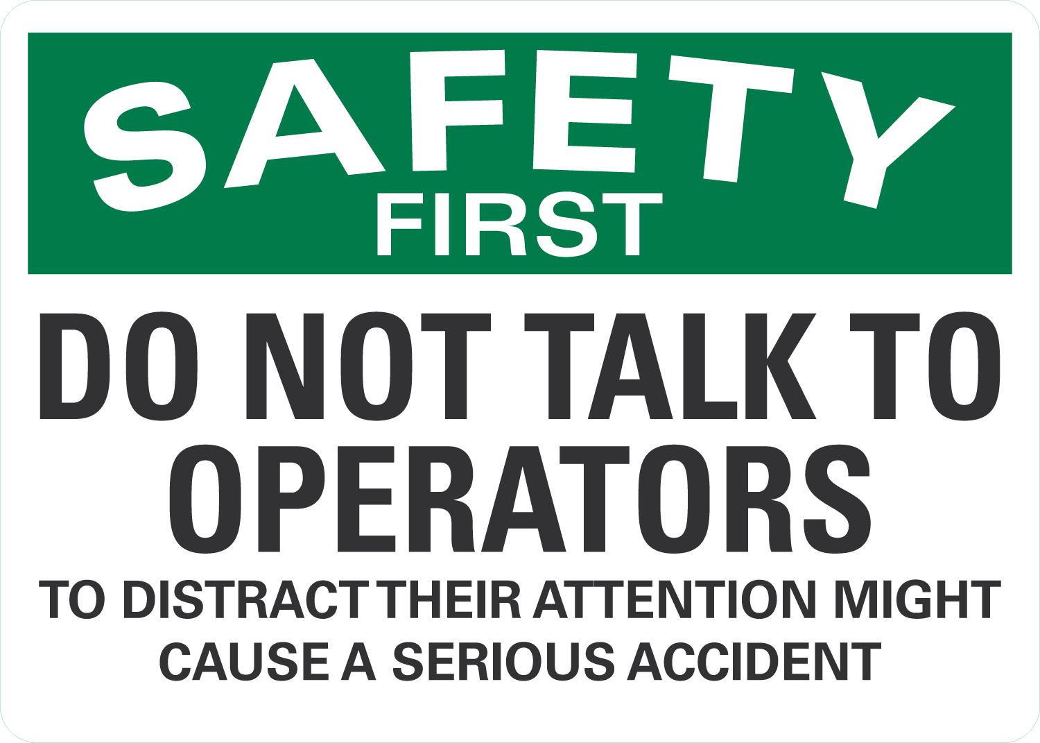 Safety First OSHA Sign: Do Not Talk To Operators To Distract Their Attention Might Cause A Serious Accident