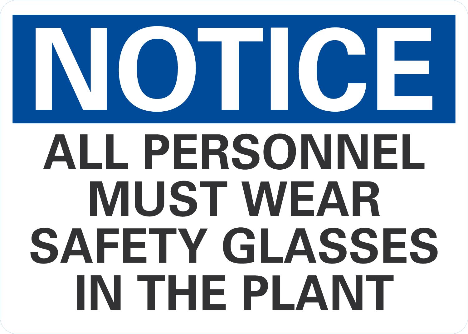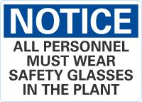 Notice OSHA Sign: All Personnel Must Wear Safety Glasses In The Plant