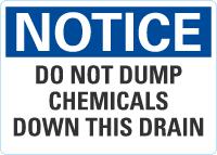 Notice OSHA Sign: Do Not Dump Chemicals Down This Drain