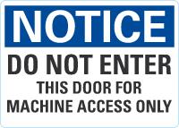 Notice OSHA Sign: Do Not Enter This Door For Machine Access Only