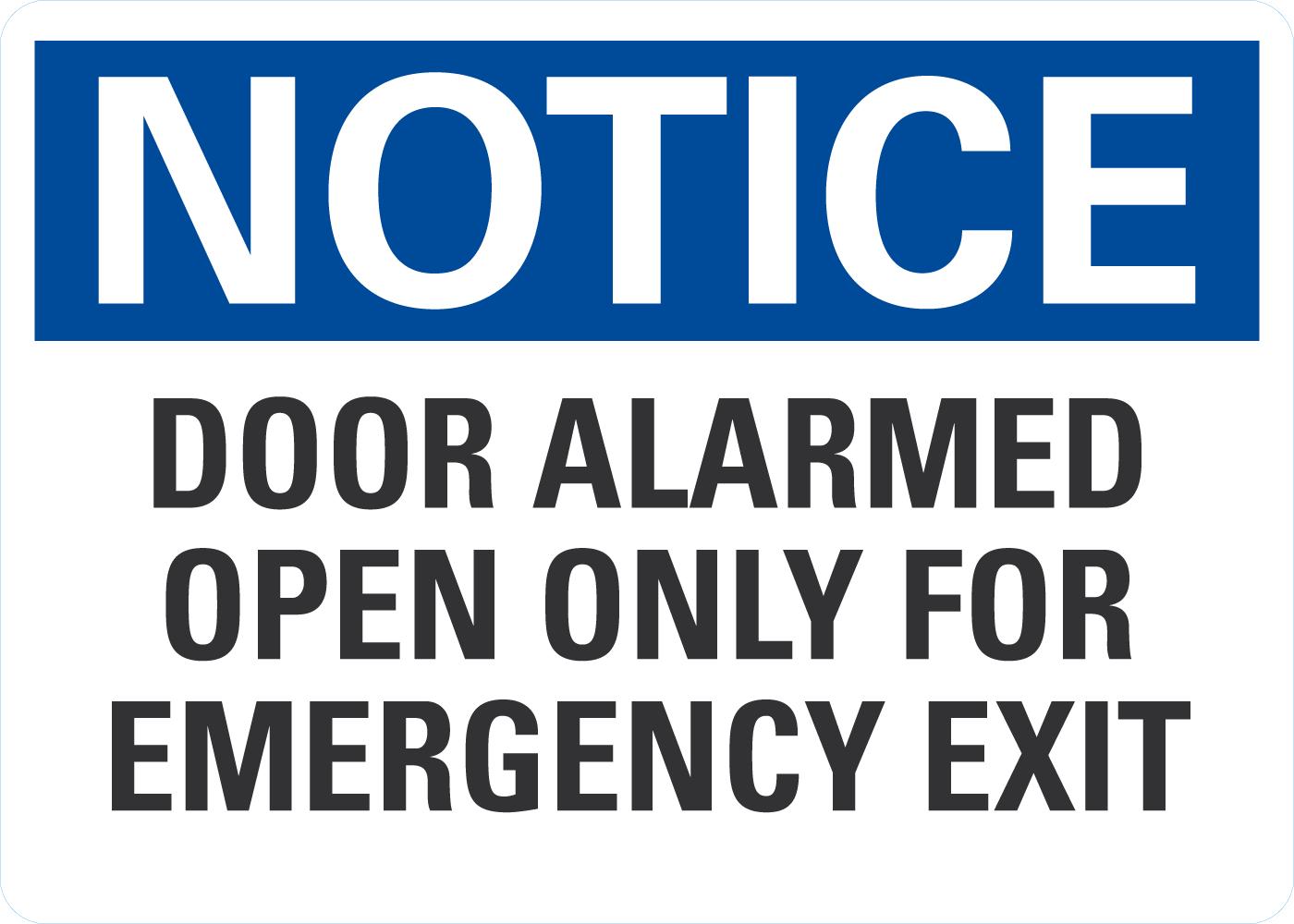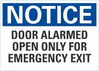 OSHA Notice Sign: Door Alarmed Open Only For Emergency Exit