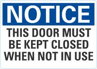 OSHA Notice Sign: This Door Must Be Kept Closed When Not In Use