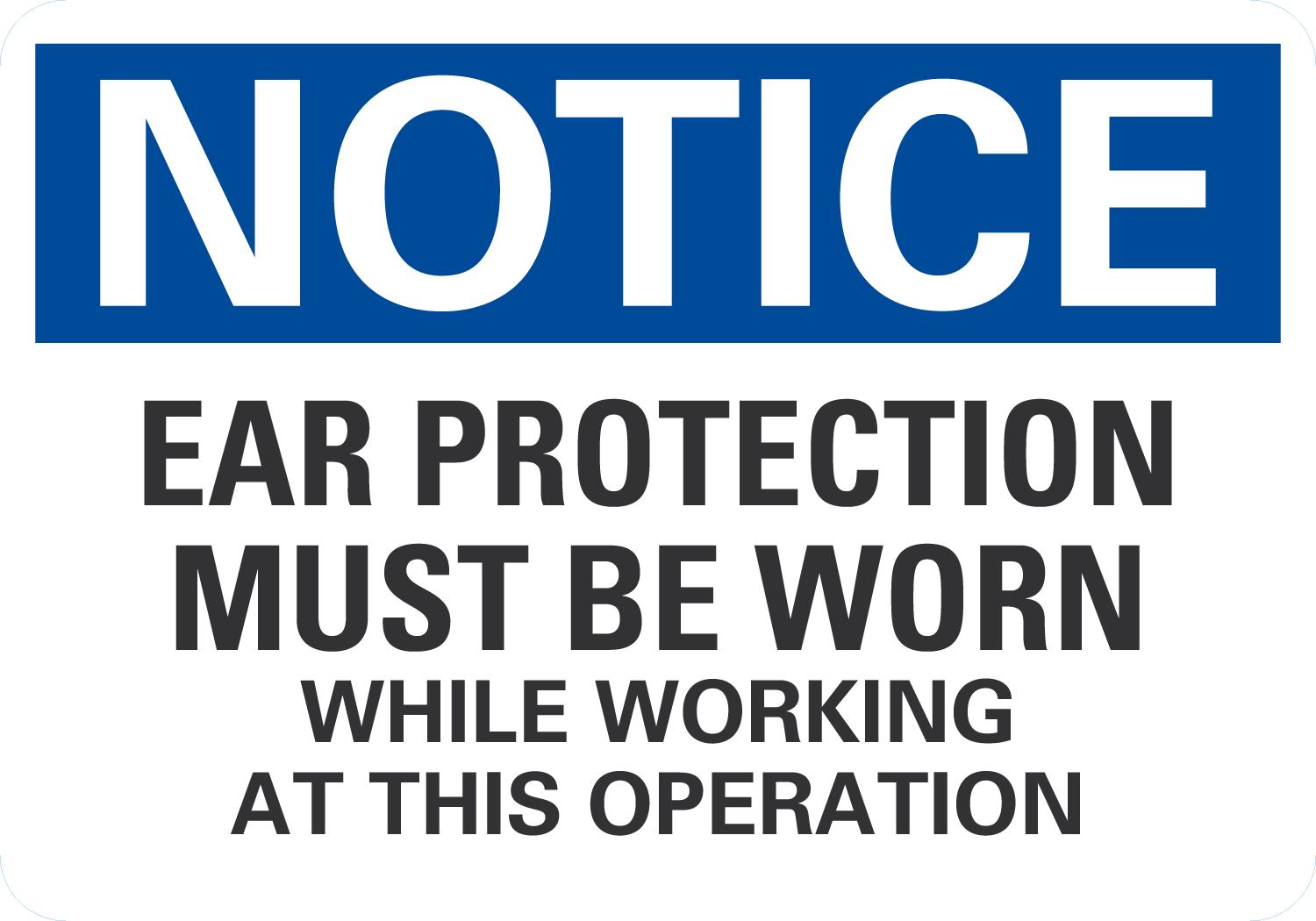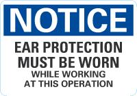 Notice OSHA Sign: Ear Protection Must Be Worn While Working At This Operation