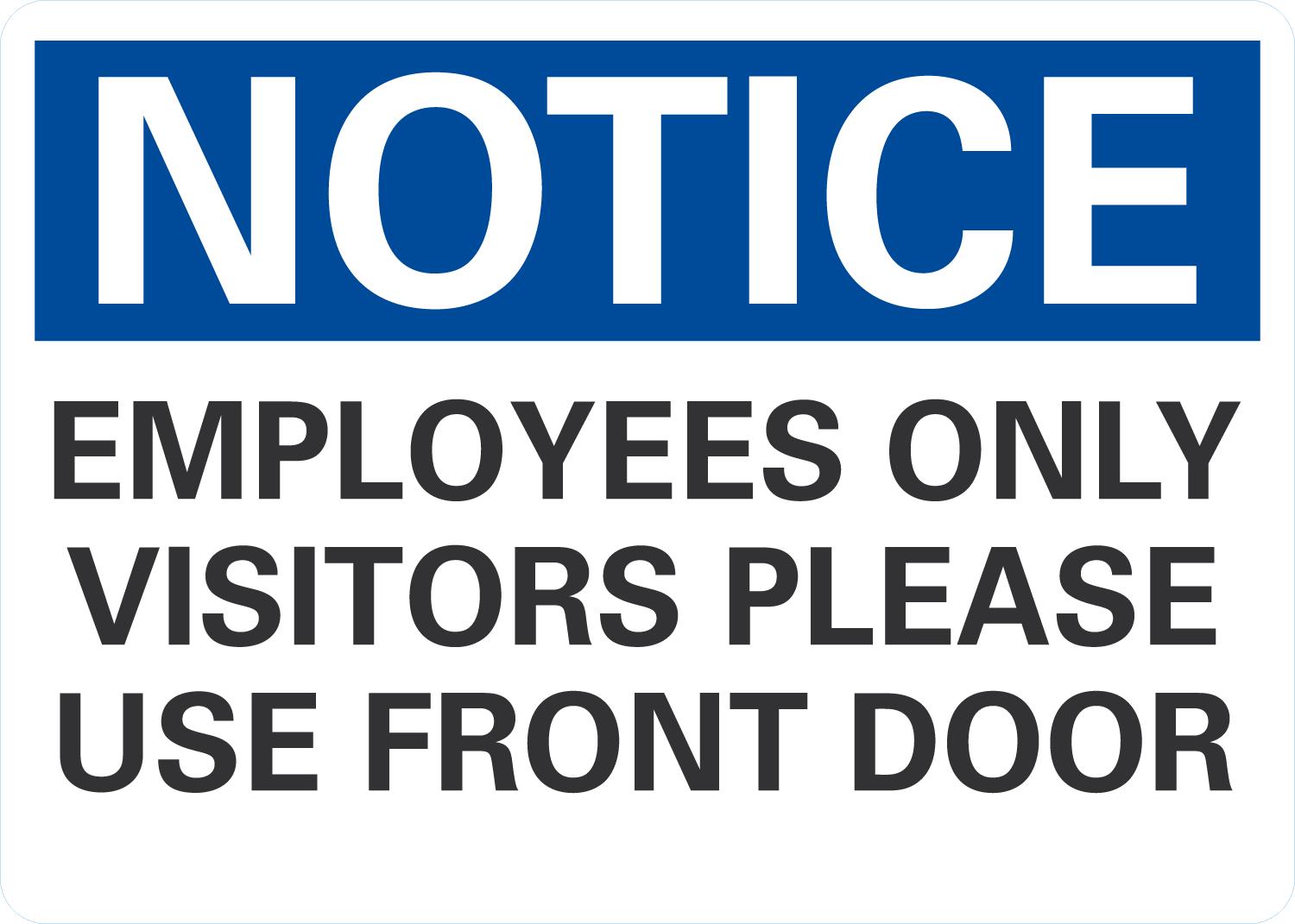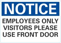 Notice Sign: Employees Only Visitors Please Use Front Door