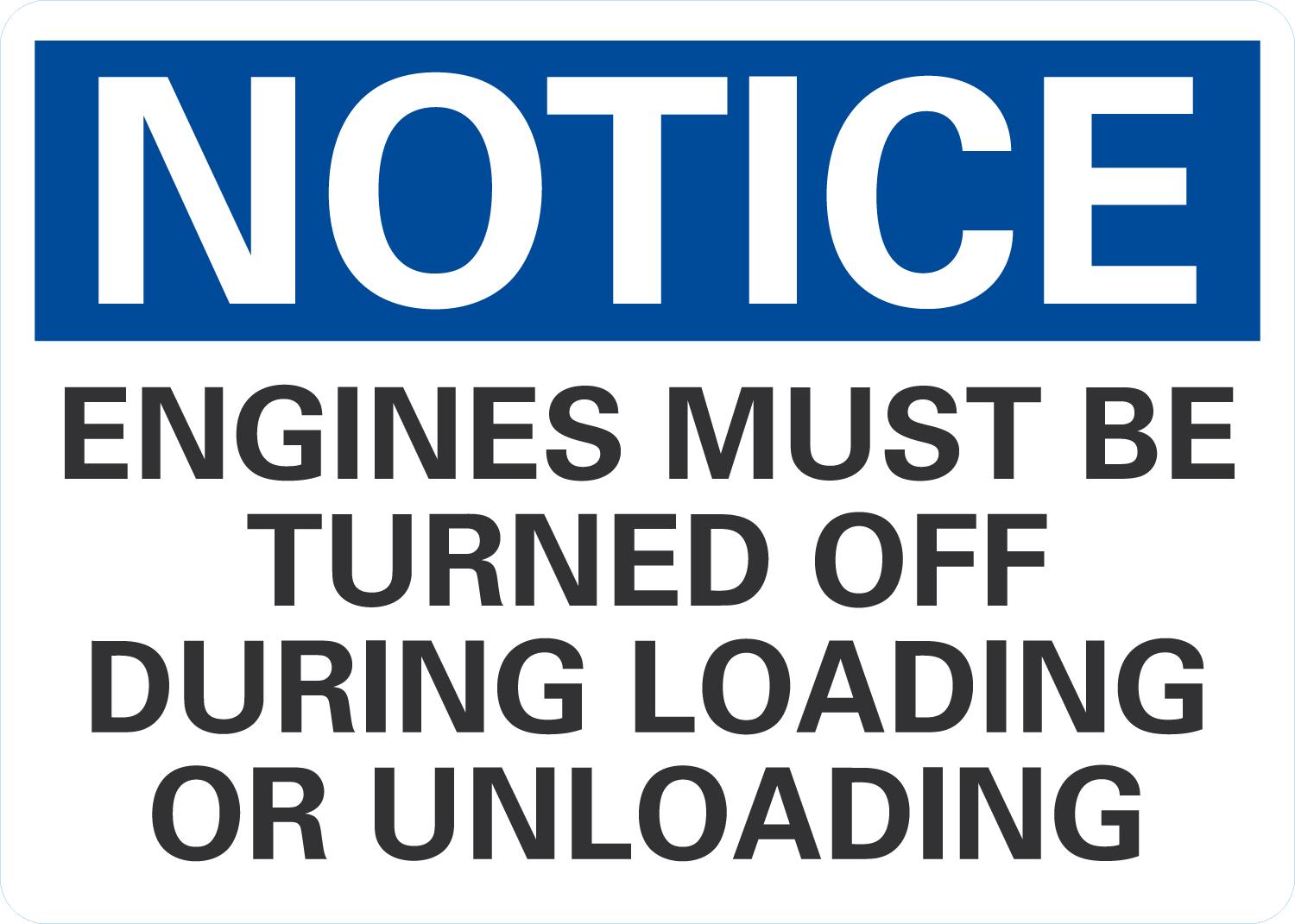 OSHA Notice Sign: Engines Must Be Turned Off During Loading Or Unloading