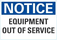 Notice OSHA Sign: Equipment Out Of Service