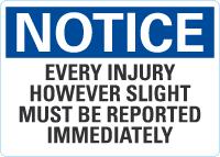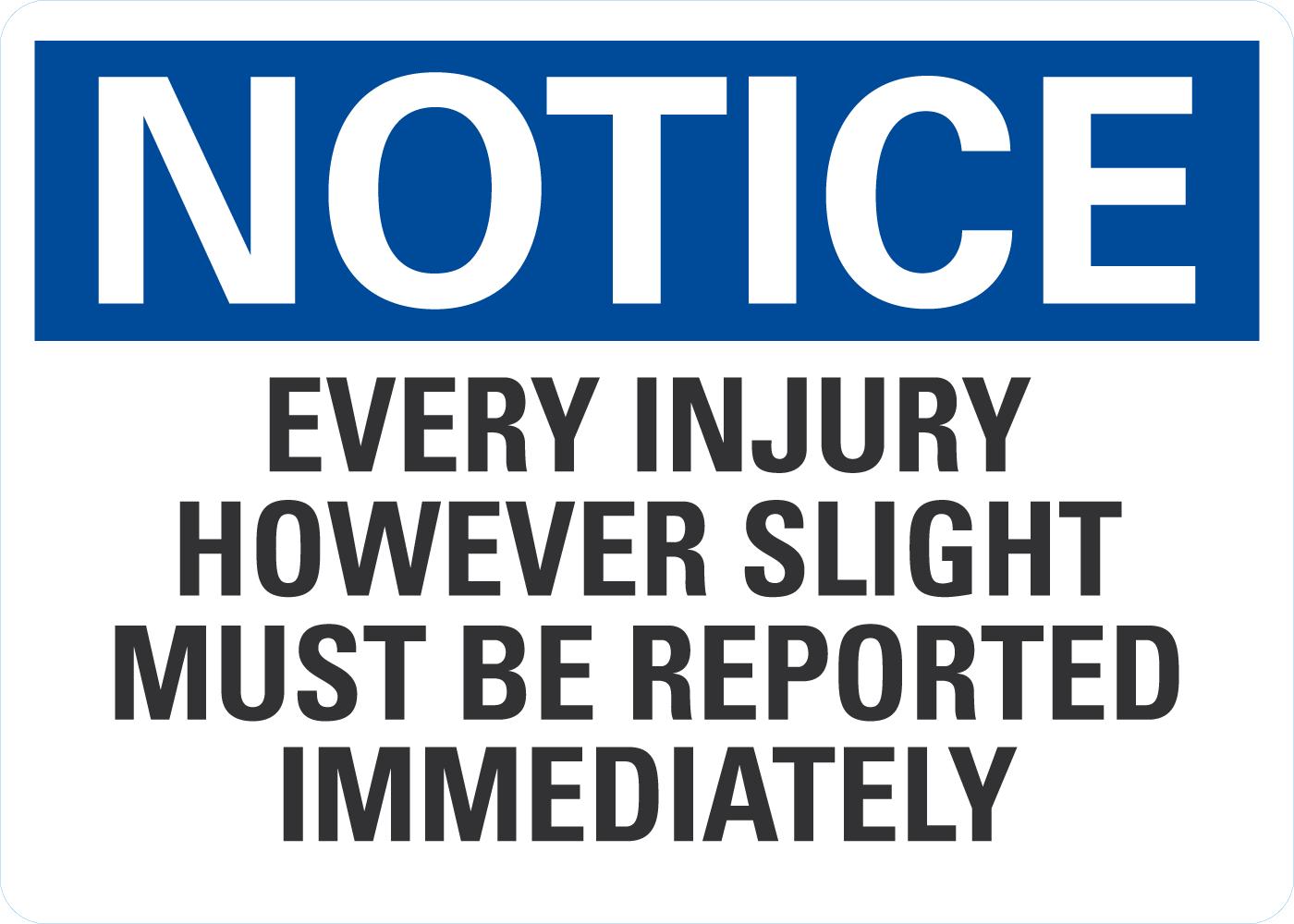 OSHA Notice Sign: Every Injury However Slight Must Be Reported Immediately