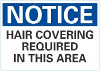 Notice OSHA Sign: Hair Covering Required In This Area