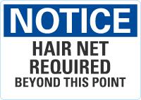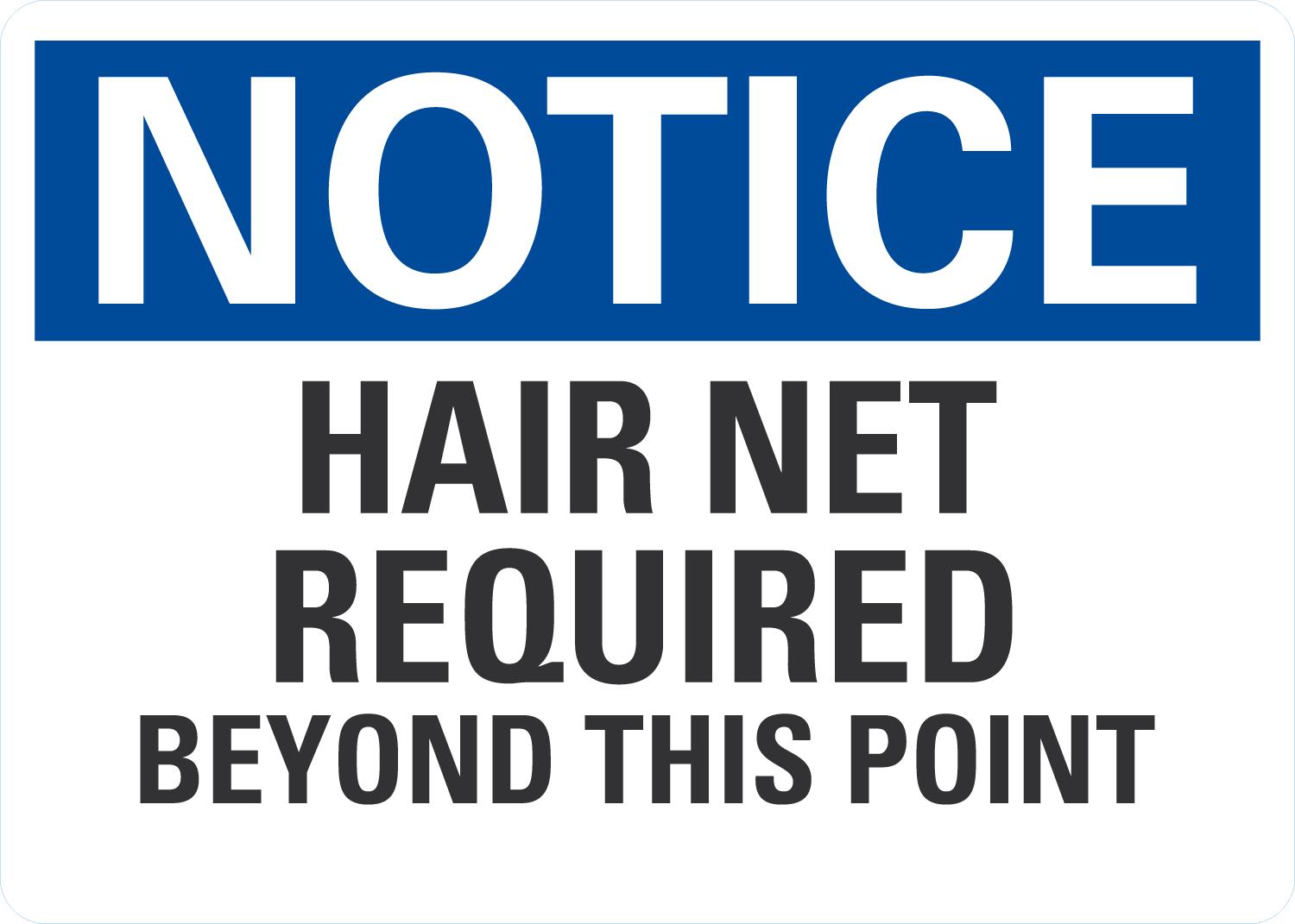 Notice OSHA Sign: Hair Net Required Beyond This Point