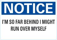 OSHA Notice Sign: I'M So Far Behind I Might Run Over Myself