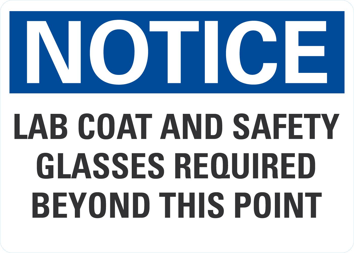 Notice OSHA Sign: Lab Coat And Safety Glasses Required Beyond This Point