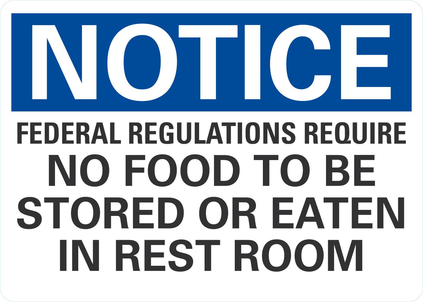OSHA Notice Sign: Federal Regulations Require - No Food To Be Stored or Eaten In Rest Room