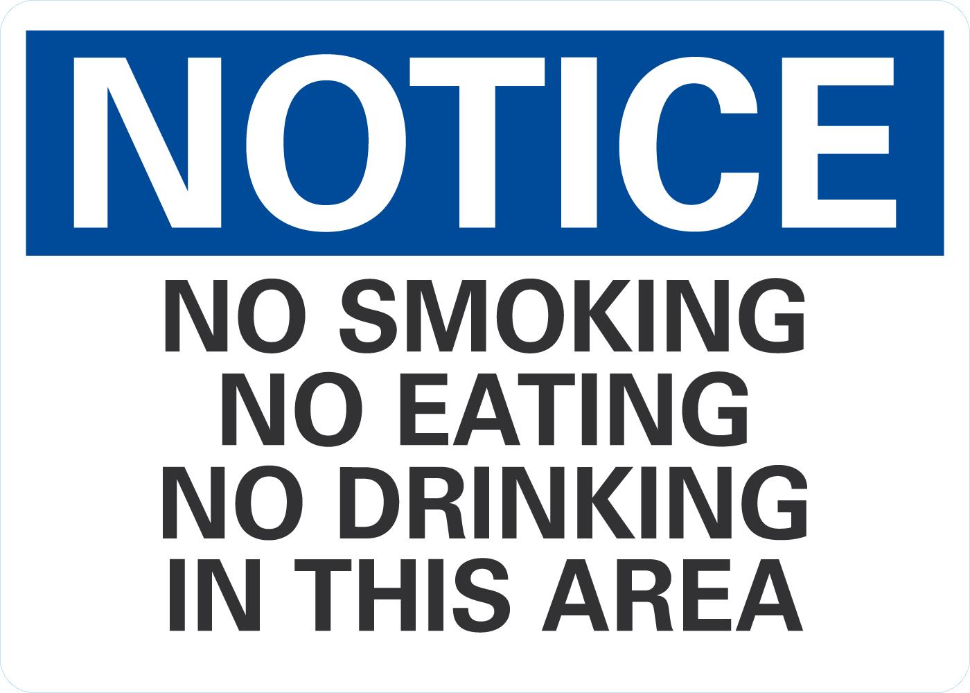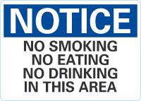 Notice OSHA Sign: No Smoking, No Eating, No Drinking In This Area