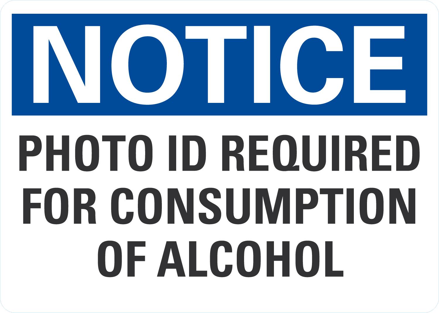 OSHA Notice Sign: Photo ID Required For Consumption Of Alcohol
