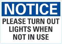 Notice OSHA Sign: Please Turn Out Lights When Not In Use