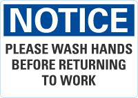 OSHA Notice Sign: Please Wash Hands Before Returning To Work