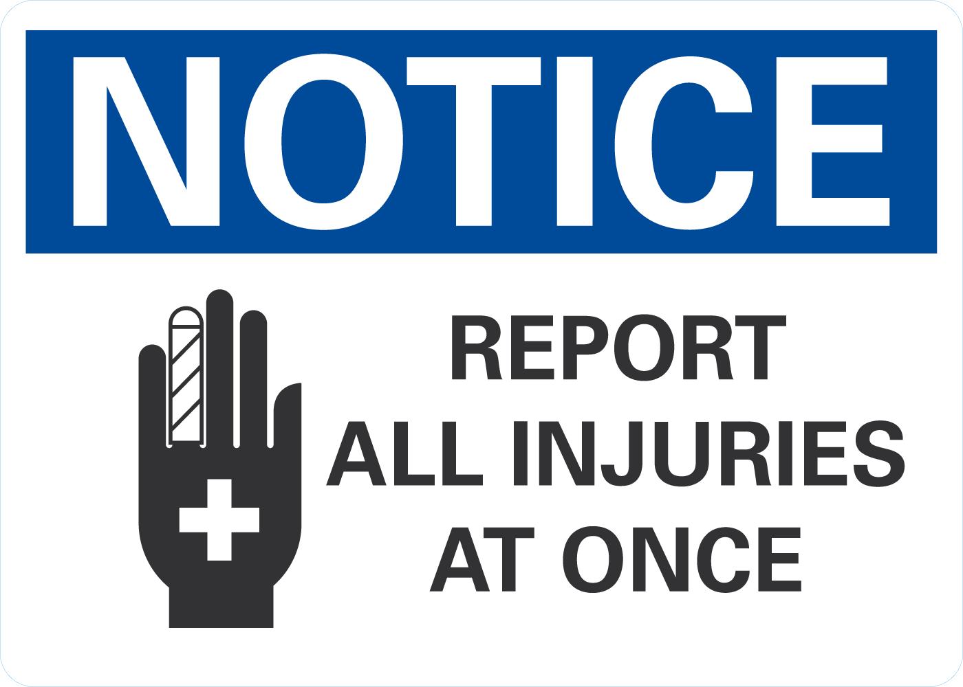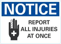 OSHA Notice Sign: Report All Injuries At Once