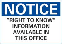OSHA Notice Sign: Right To Know Information Available In This Office