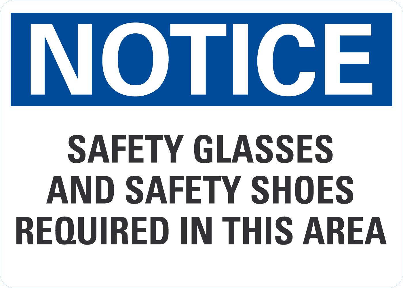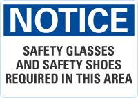 Notice OSHA Sign: Safety Glasses and Safety Shoes Required in This Area