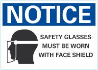 OSHA Notice Sign: Safety Glasses Must Be Worn With Face Shield
