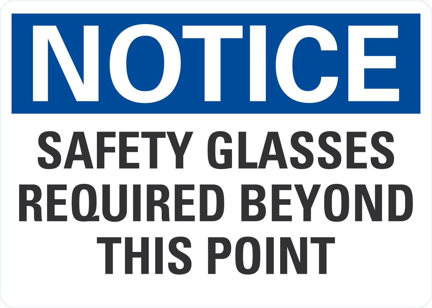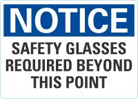 Notice OSHA Sign: Safety Glasses Required Beyond This Point