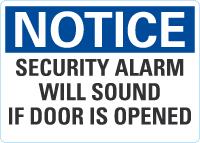 OSHA Notice Sign: Security Alarm Will Sound If Door Is Opened