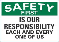 Safety First OSHA Sign: Safety Is Our Responsibility Each And Every One of Us