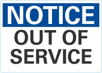 Notice OSHA Sign: Out Of Service