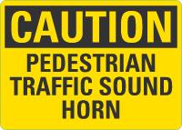 Caution OSHA Sign: Pedestrian Traffic - Sound Horn