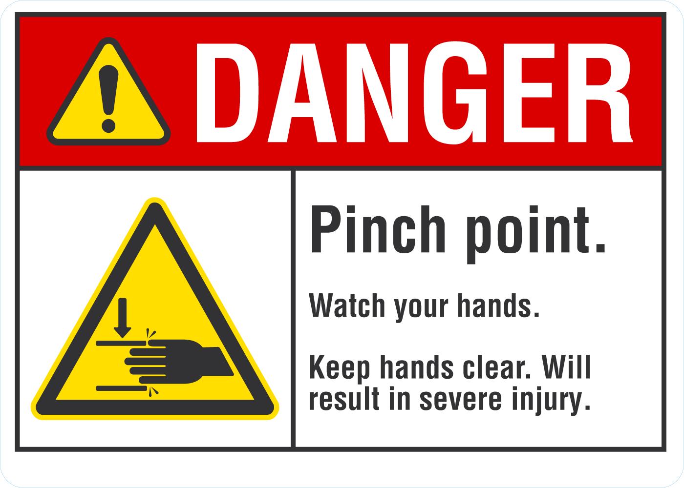 ANSI Danger Sign: Pinch Point - Watch Your Hands, Keep Hands Clear. Will Result In Severe Injury