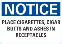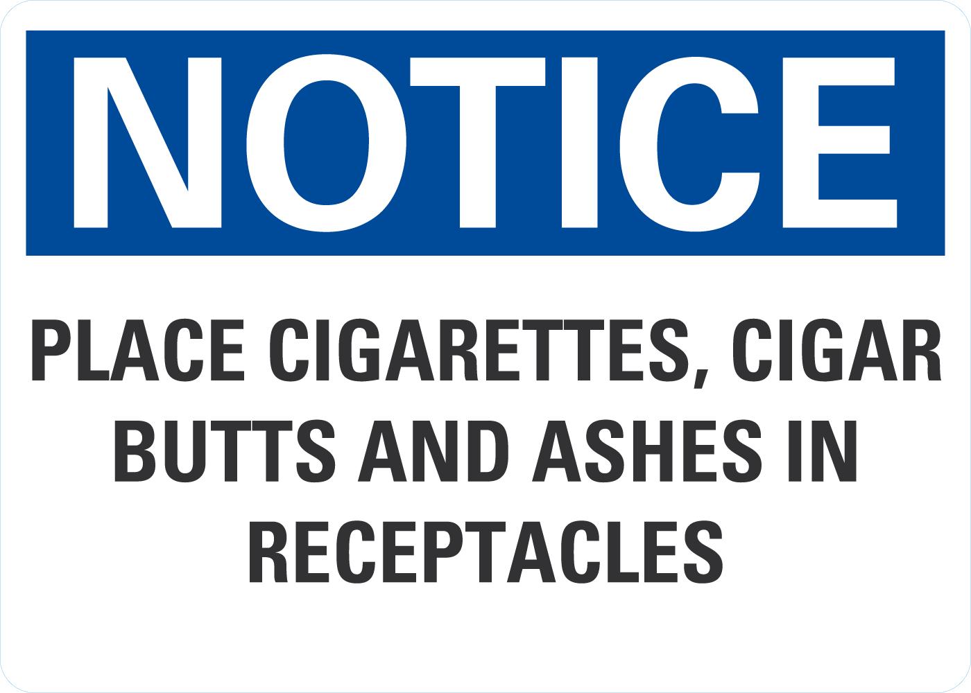OSHA Notice Sign: Place Cigarettes, Cigar Butts And Ashes In Receptacles