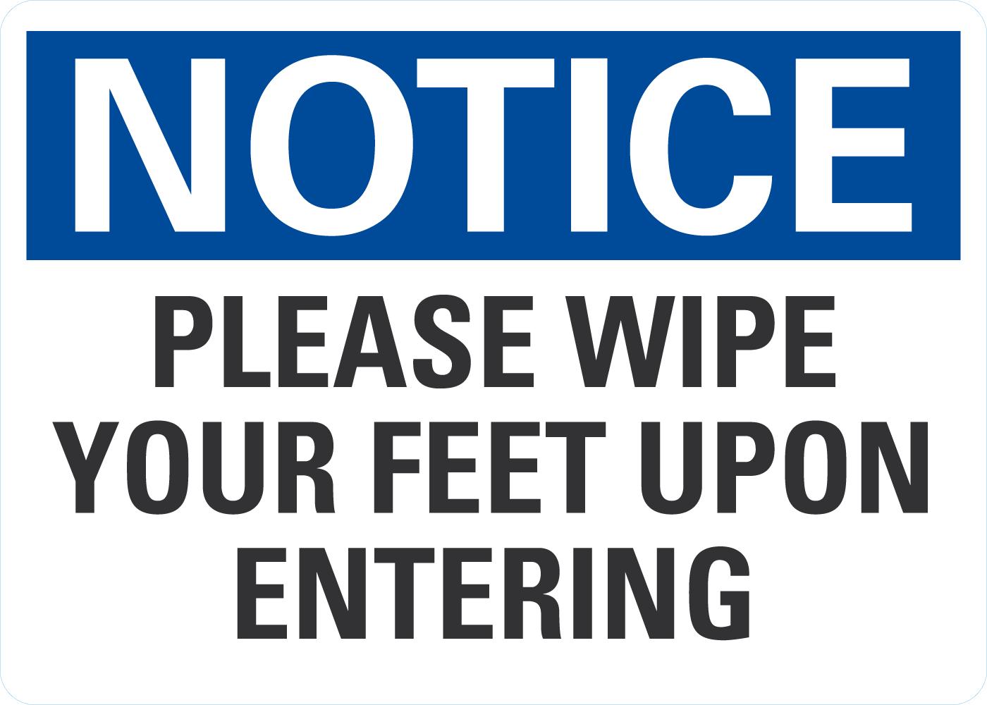 OSHA Notice Sign: Please Wipe Your Feet Upon Entering