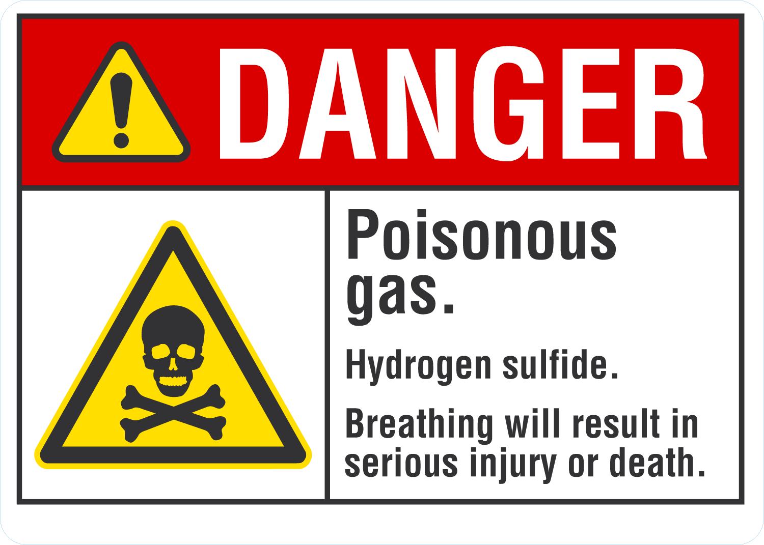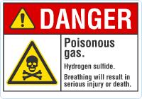 ANSI Danger Sign: Poisonous Gas - Hydrogen Sulfide, Breathing Will Result In Serious Injury Or Death