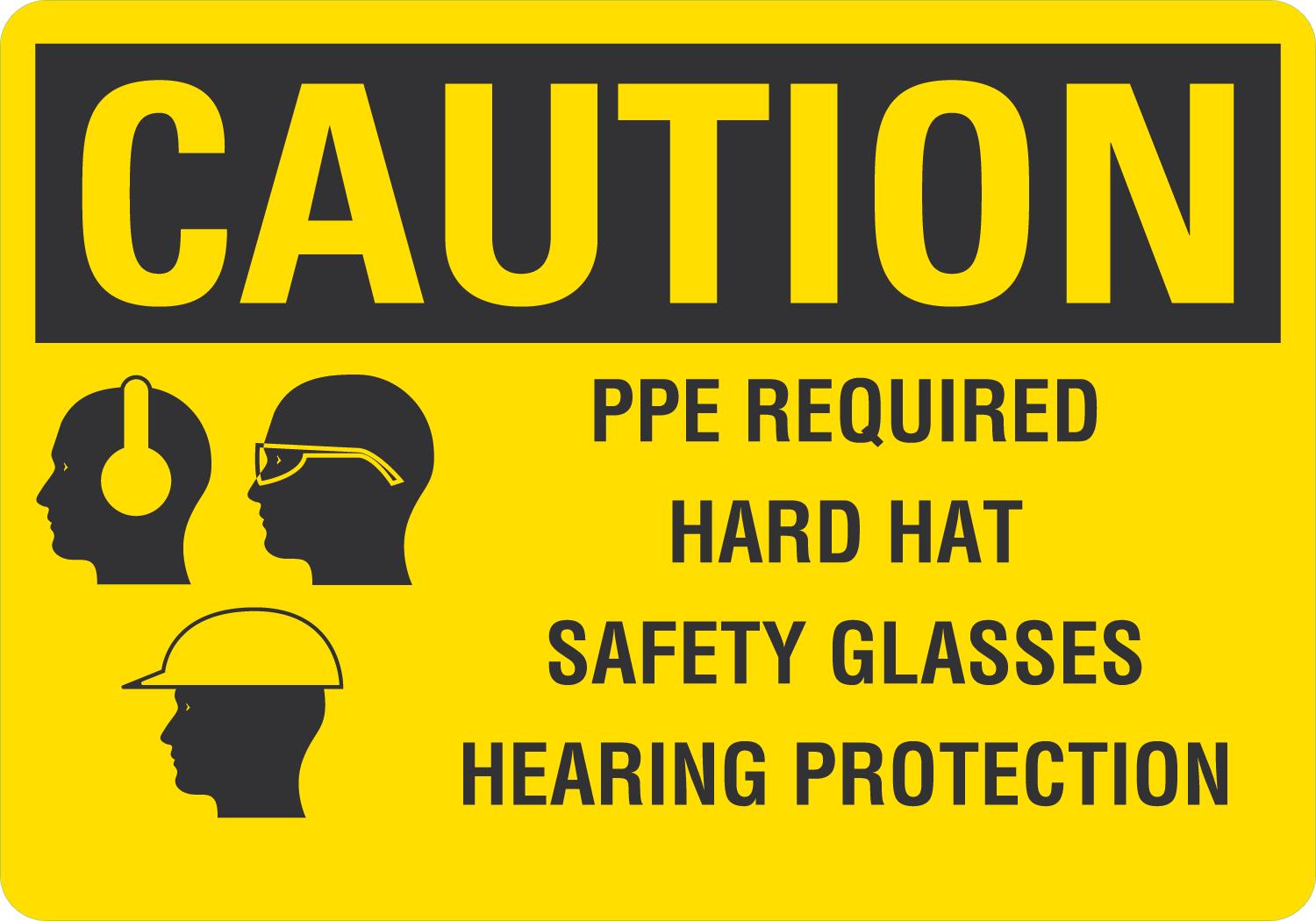 OSHA Caution Sign: PPE Required Hard Hat Safety Glasses Hearing Protection
