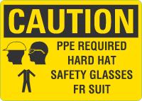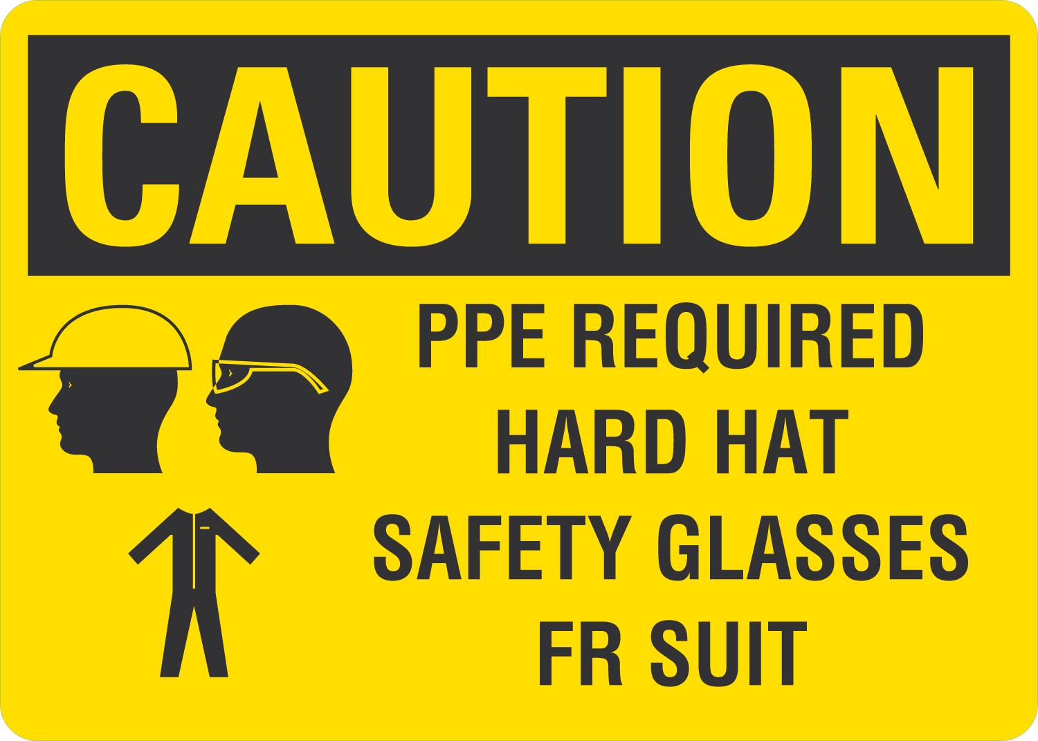 OSHA Caution Sign: PPE Required Hard Hat Safety Glasses FR Suit