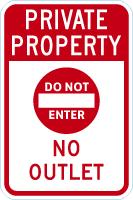 Private Property Sign: Do Not Enter, No Outlet
