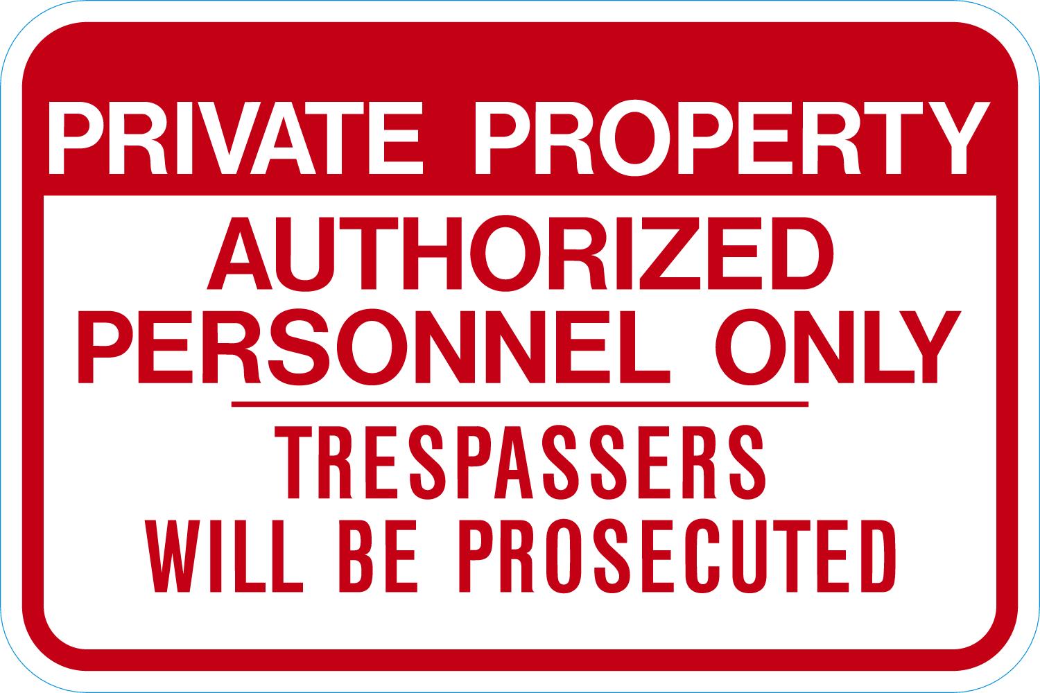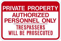 Private Property Sign: Authorized Personnel Only, Trespassers Will Be Prosecuted