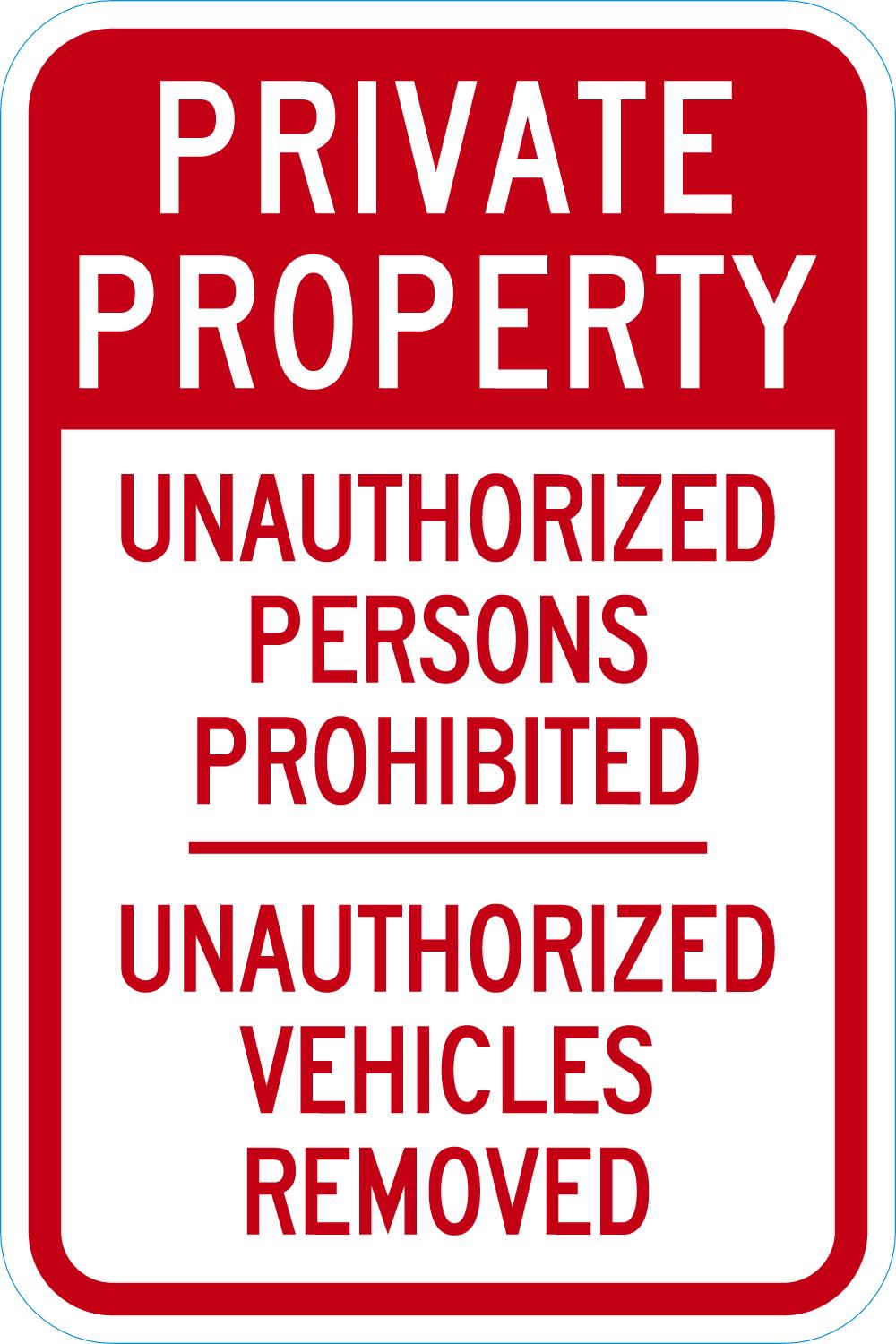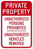 Private Property Sign: Unauthorized Persons Prohibited, Unauthorized Vehicles Removed