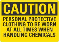 Caution OSHA Sign: Personal Protective Clothing Is To Be Worn At All Times When Handling Chemicals
