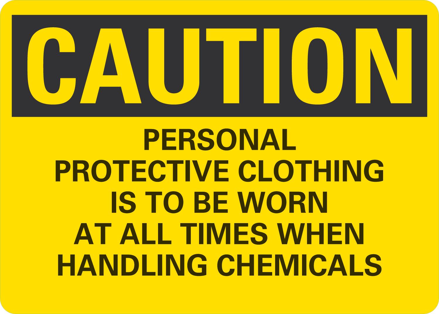 Caution OSHA Sign: Personal Protective Clothing Is To Be Worn At All Times When Handling Chemicals