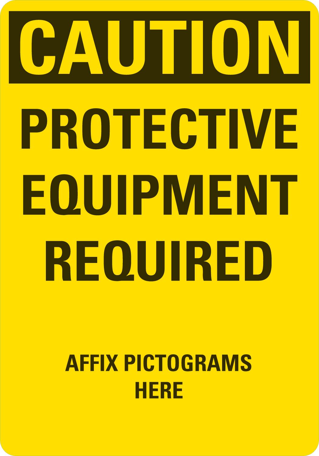OSHA Caution Sign: Protective Equipment Required Affix Pictograms