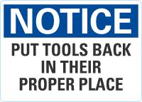 Notice OSHA Sign: Put Tools Back In Their Proper Place