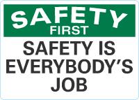 Safety First OSHA Sign: Safety Is Everybody's Job