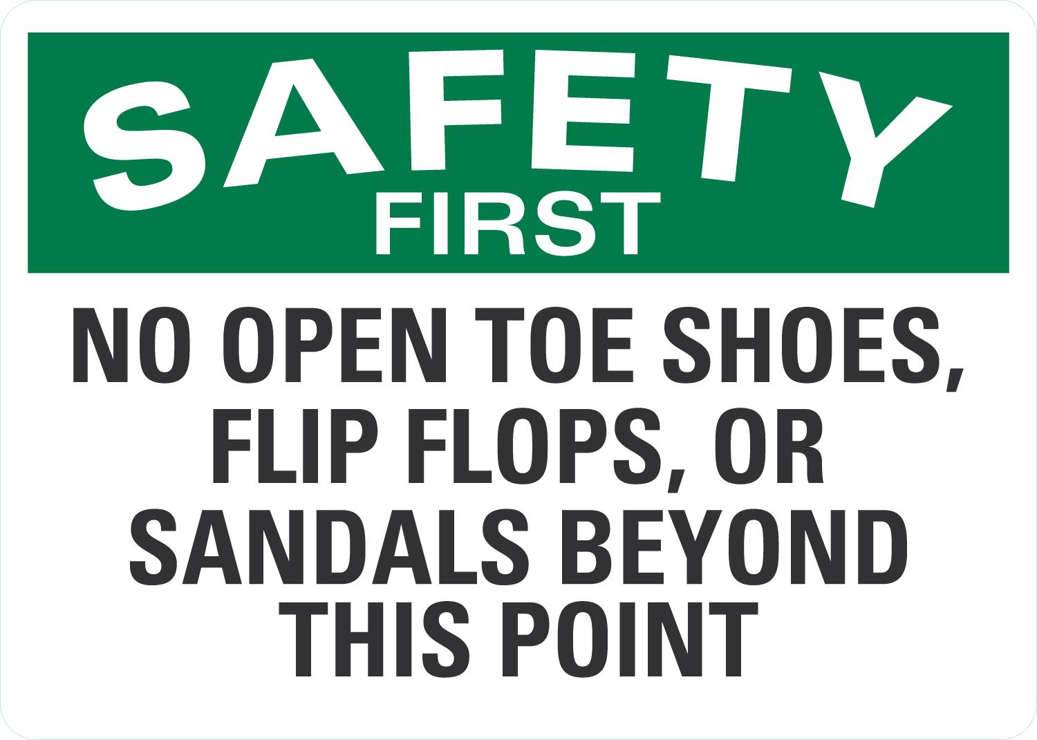 Safety First OSHA Sign: No Open Toe Shoes, Flip Flops, Or Sandals Beyond This Point